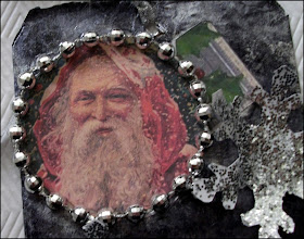I used part of a silver bead strand from the dollar store to frame around my Santa. I thought it looked pretty cool.