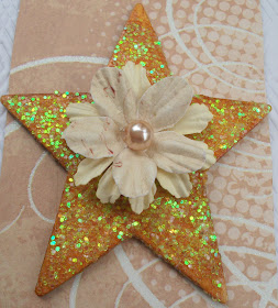 I added a flower in the middle of the star with a champagne colored pearl in the middle of the flower. I also used matching ribbon at the top of the tag.